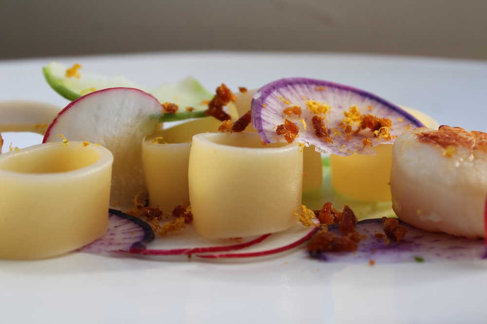 Pache, Saint-Jacques, radis d’hiver, bergamote & poutargue