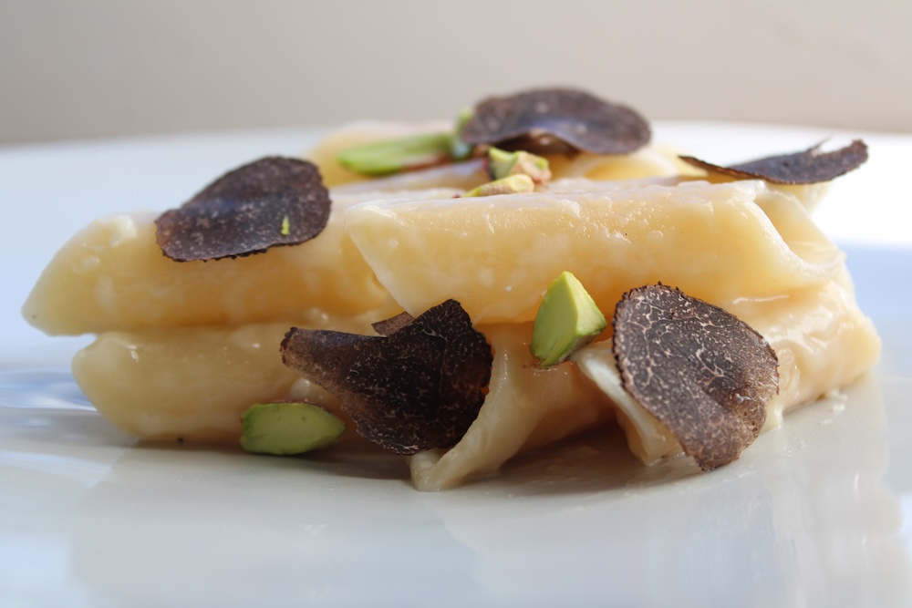 Une assiette d’une simplicité bienveillante. Onctueux à souhait, le gorgonzola enrobe les penne et leur apporte une légère amertume. La truffe y déroule une partition maîtrisée et gourmande. Une assiette qui ne pourrait jamais se terminer.