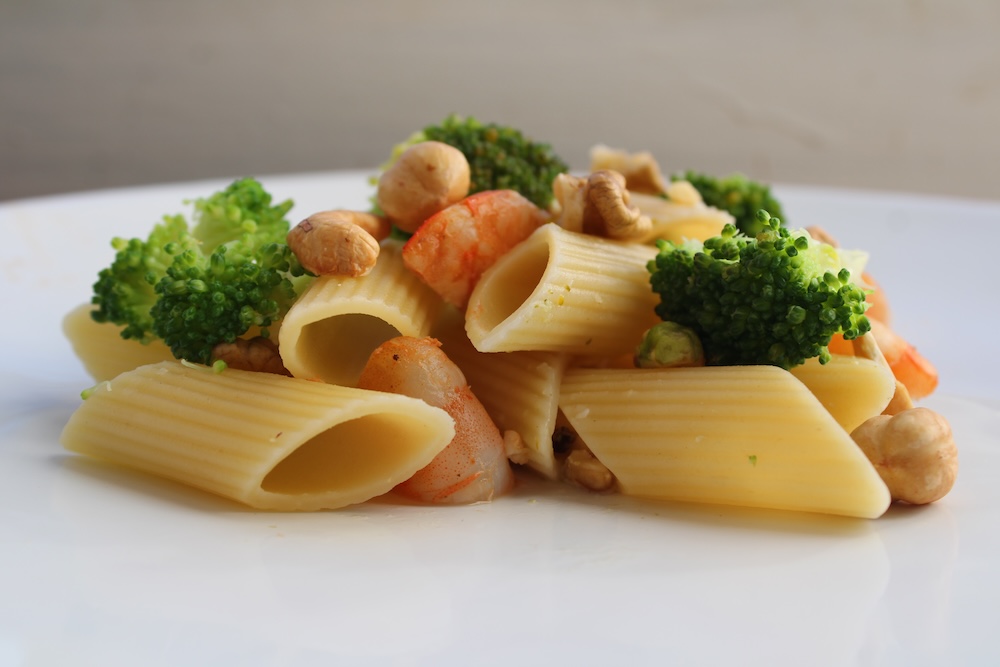 Pennoni, crevettes, brocolis & fruits secs